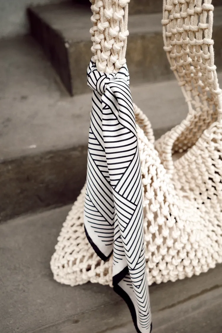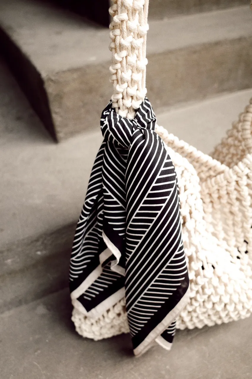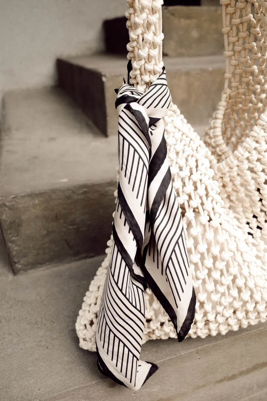 UM53幾何線條絲巾(黑/白/杏)