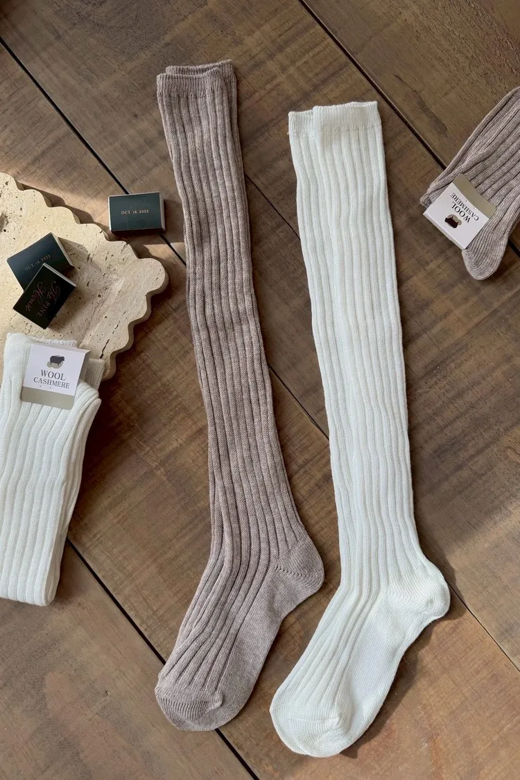 UP53羊毛小腿襪(白,杏)