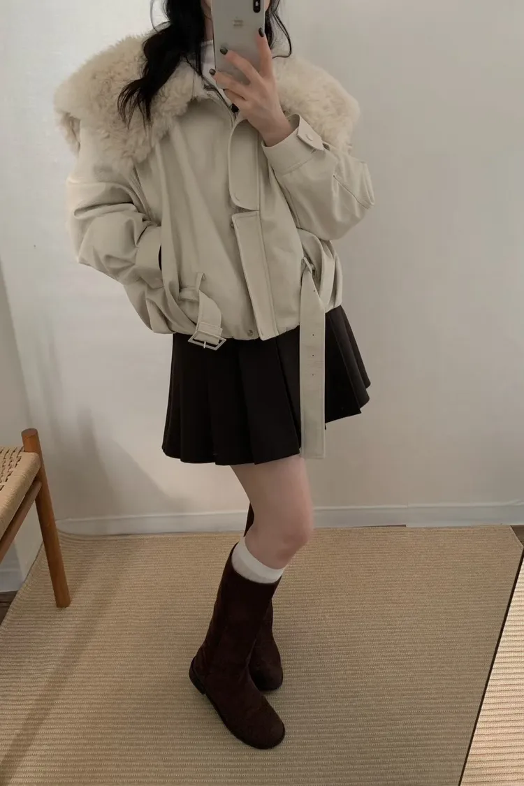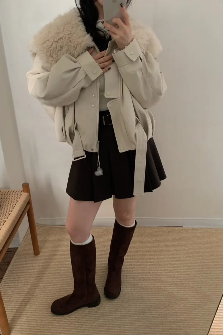 UQ20羔羊毛鴨絨皮外(白,咖)