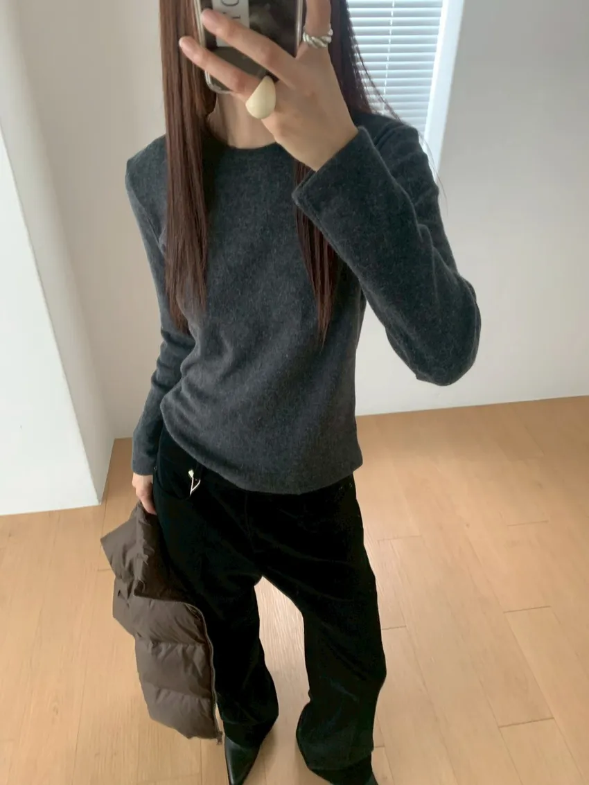 UQ23顯瘦保暖打底衣(淺灰,墨,黑,咖)