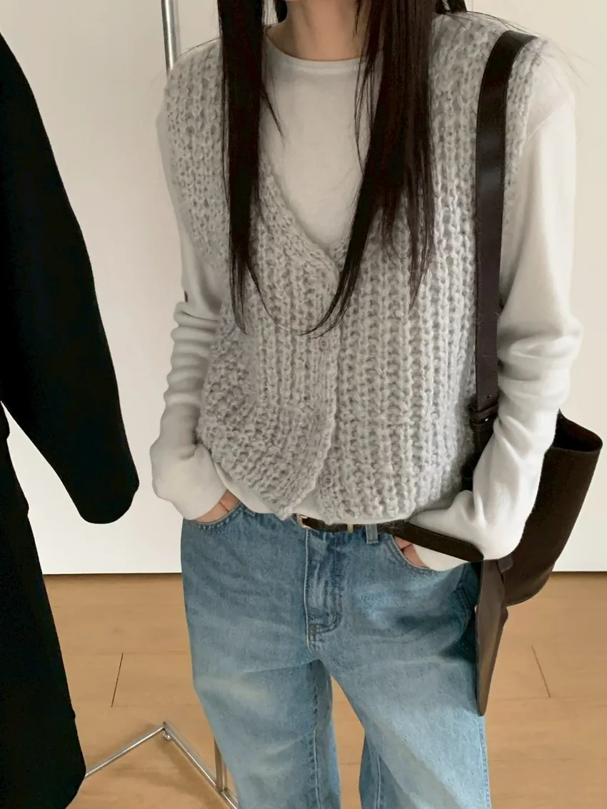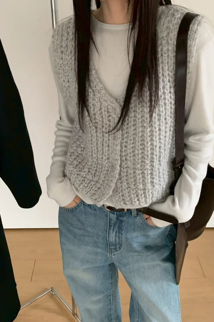 UQ24簍空針織背心(白,灰,墨,咖)