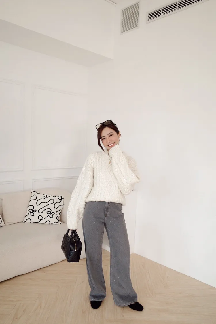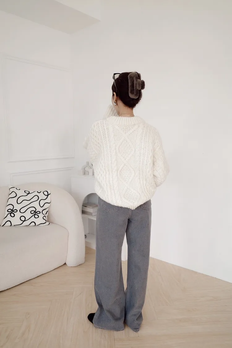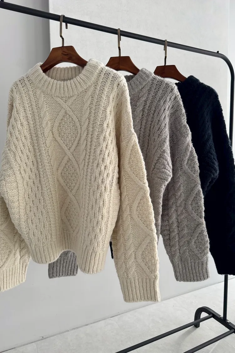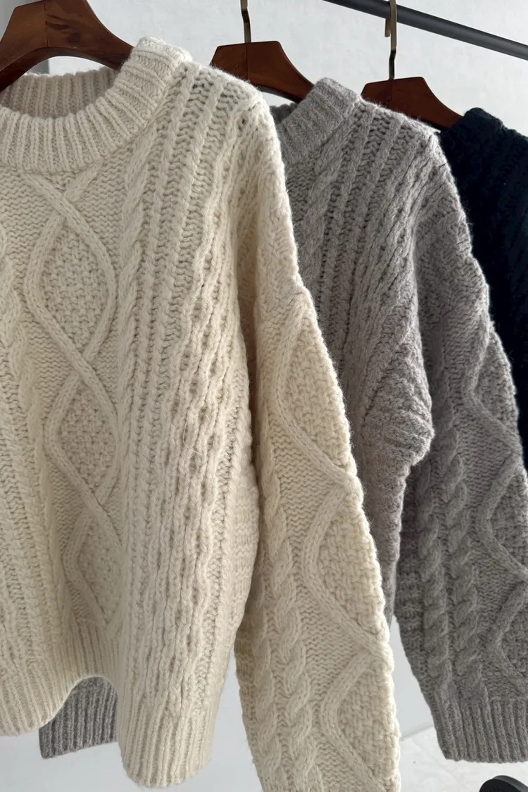 UQ26麻花針織上衣(灰,白,深藍)