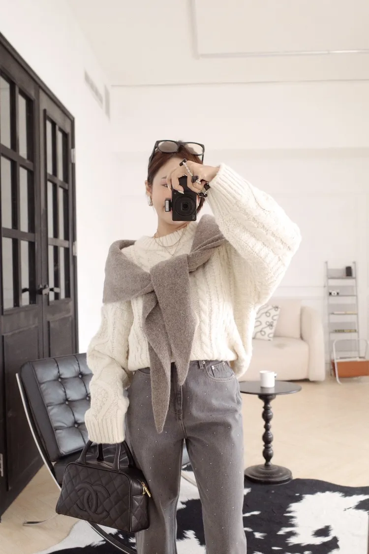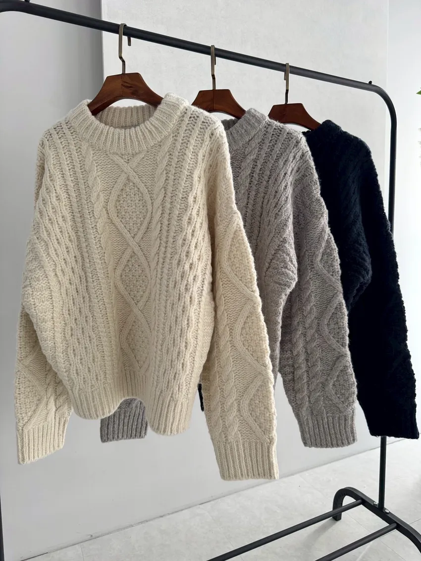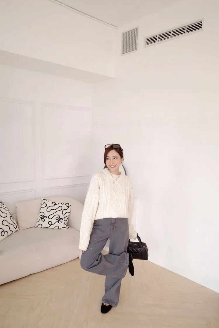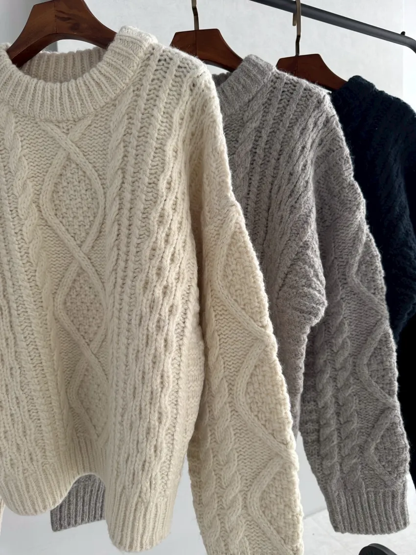 UQ26麻花針織上衣(灰,白,深藍)