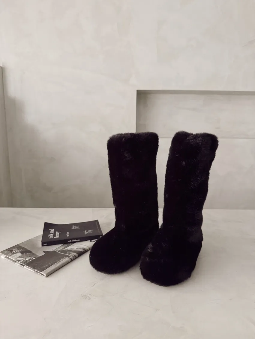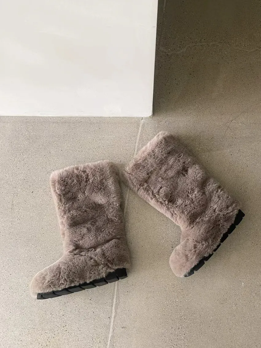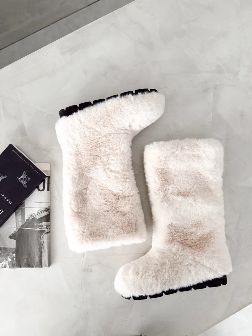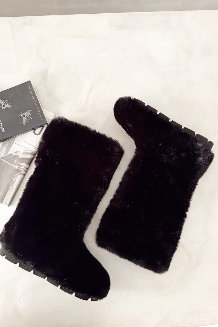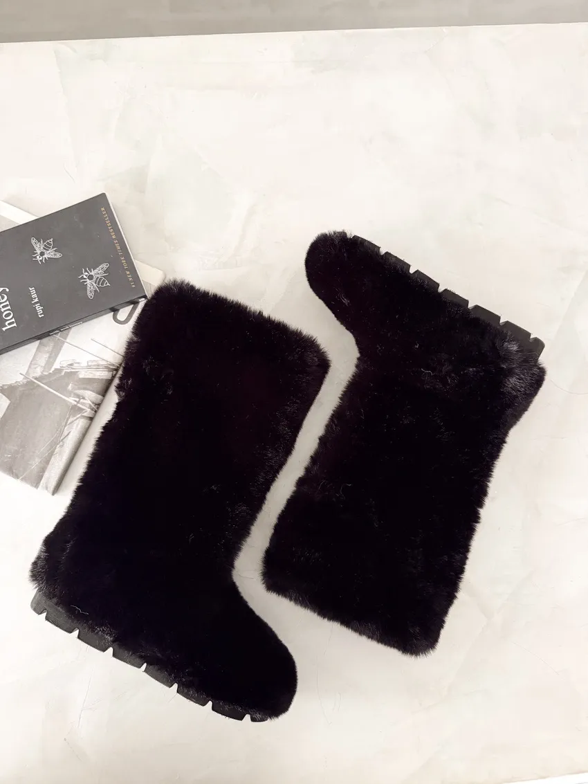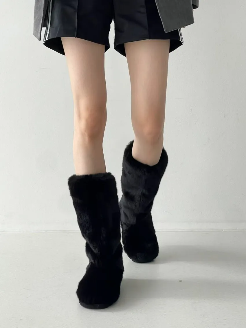 UQ37冬日溫暖毛毛長靴(黑,灰,白)