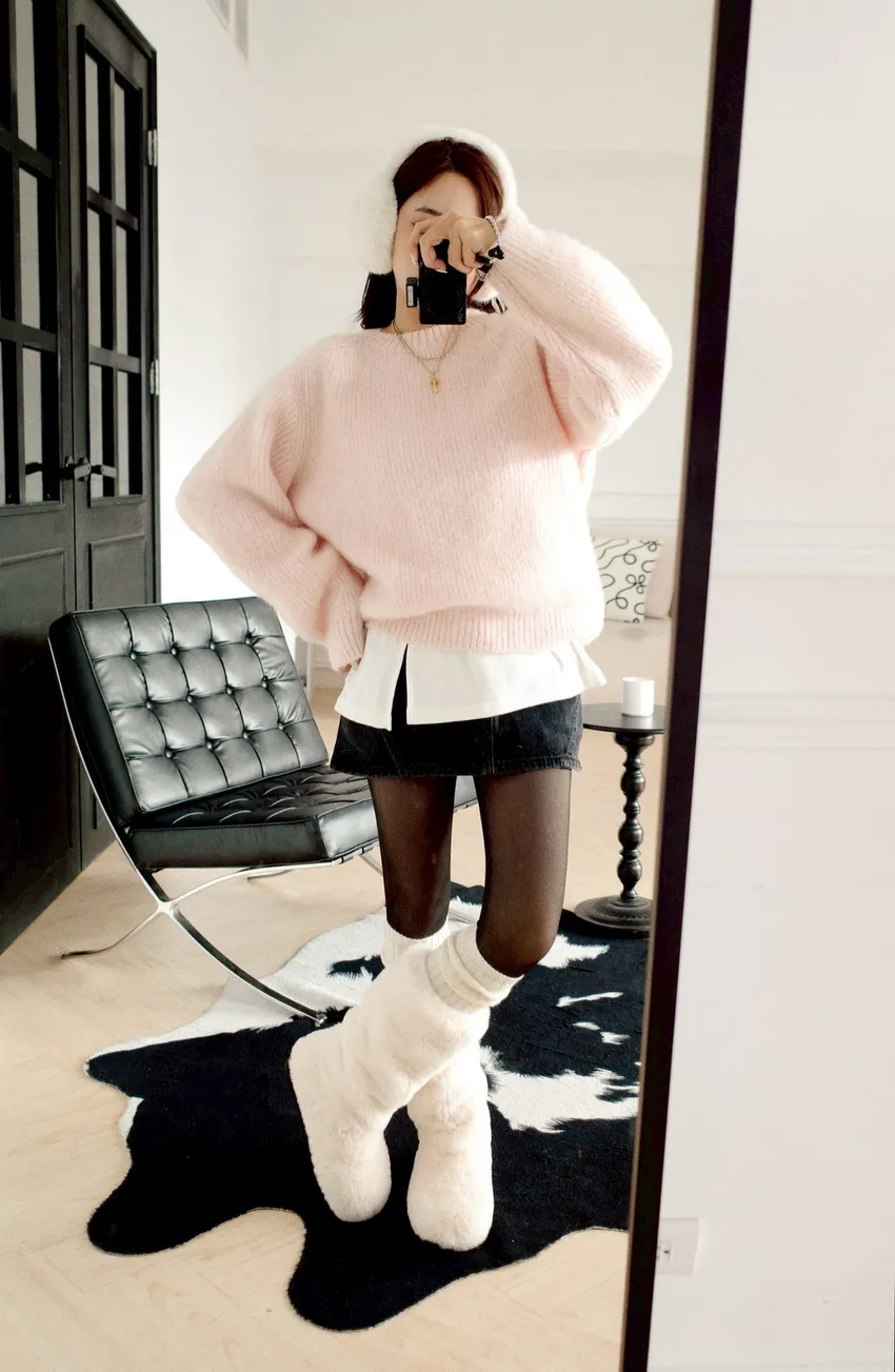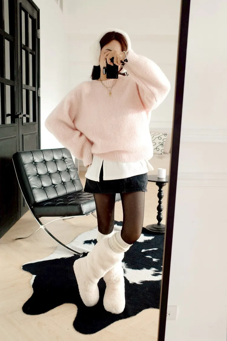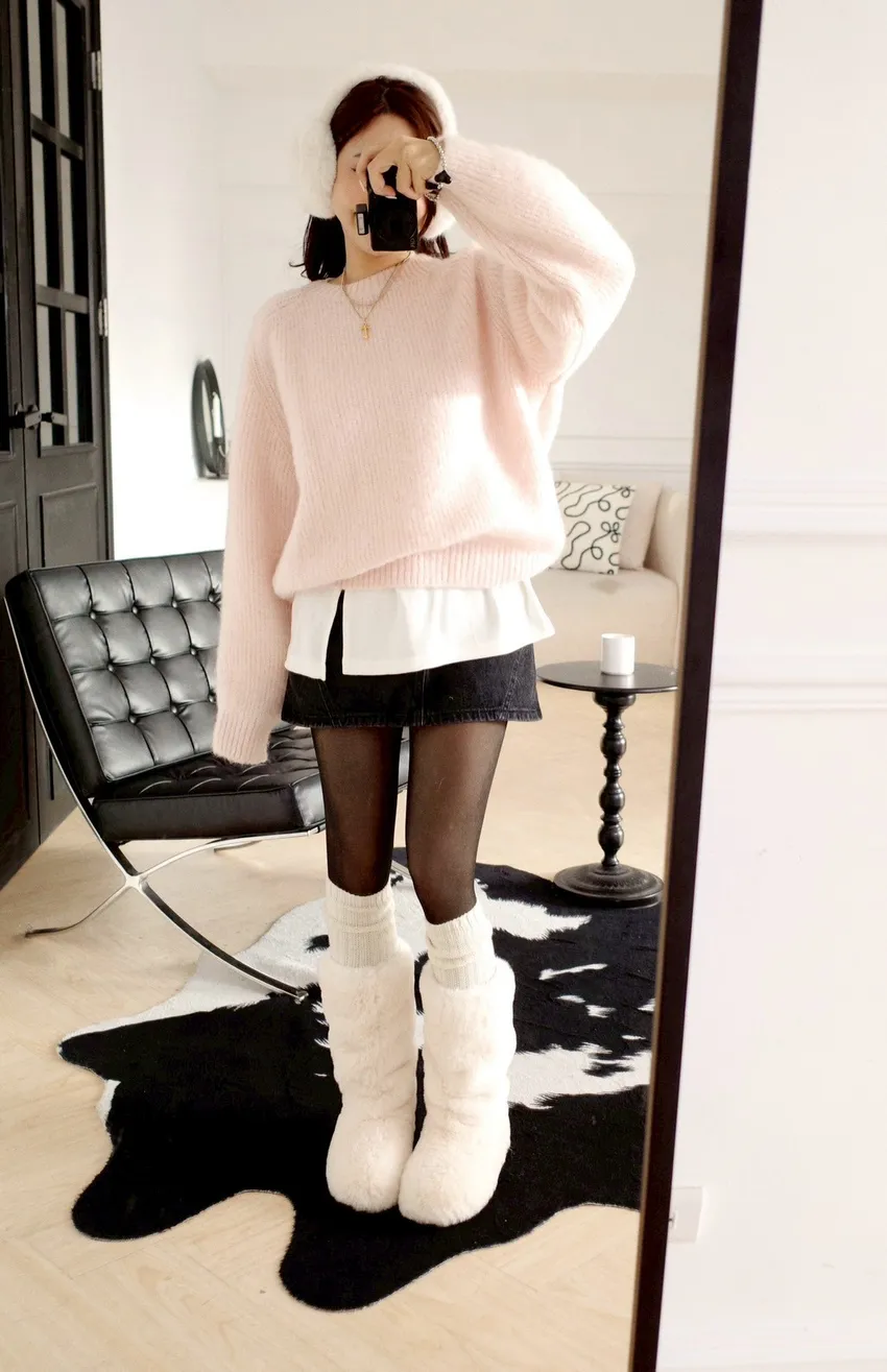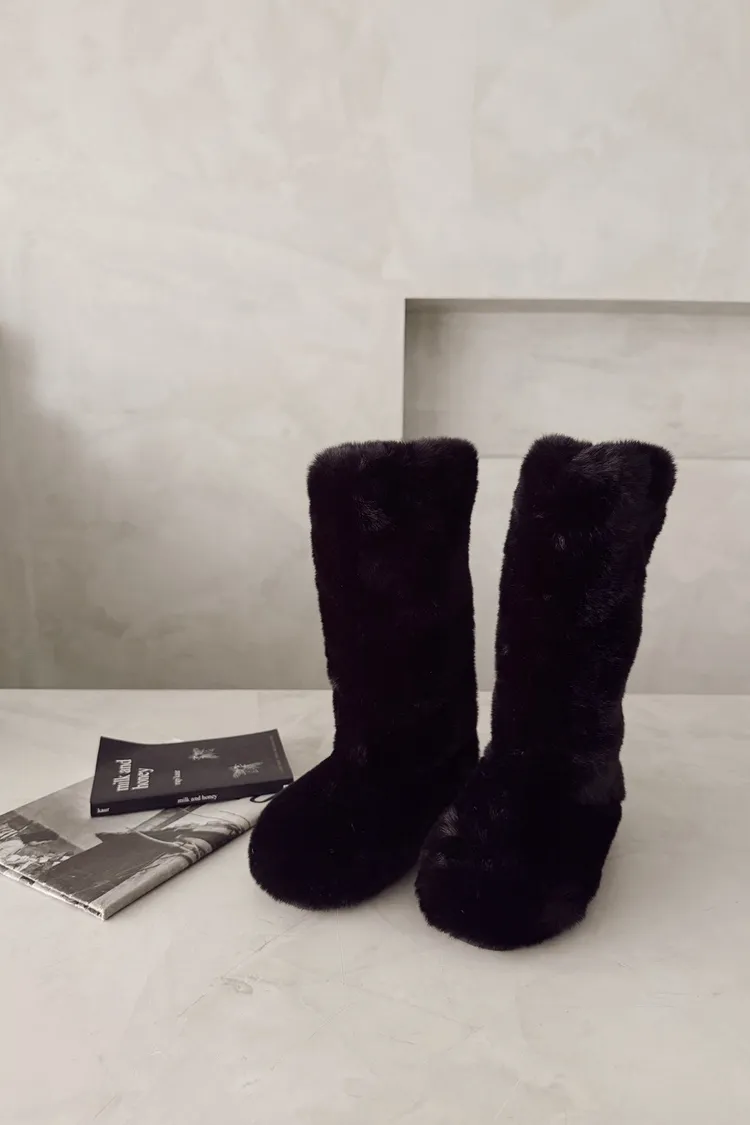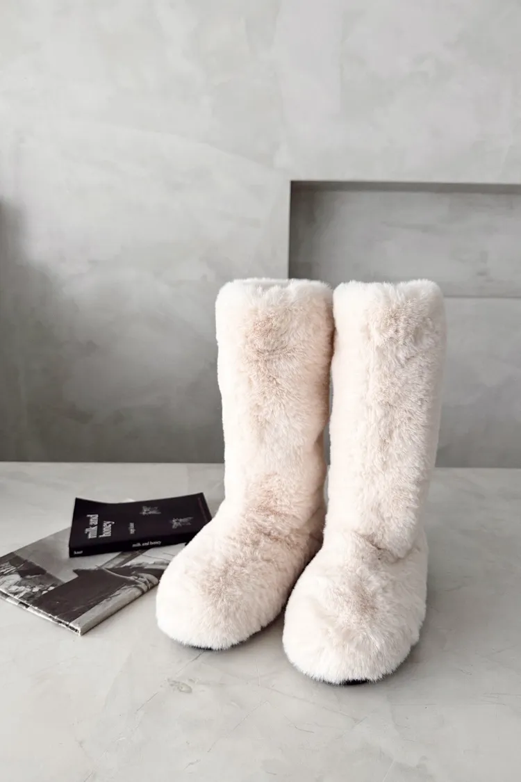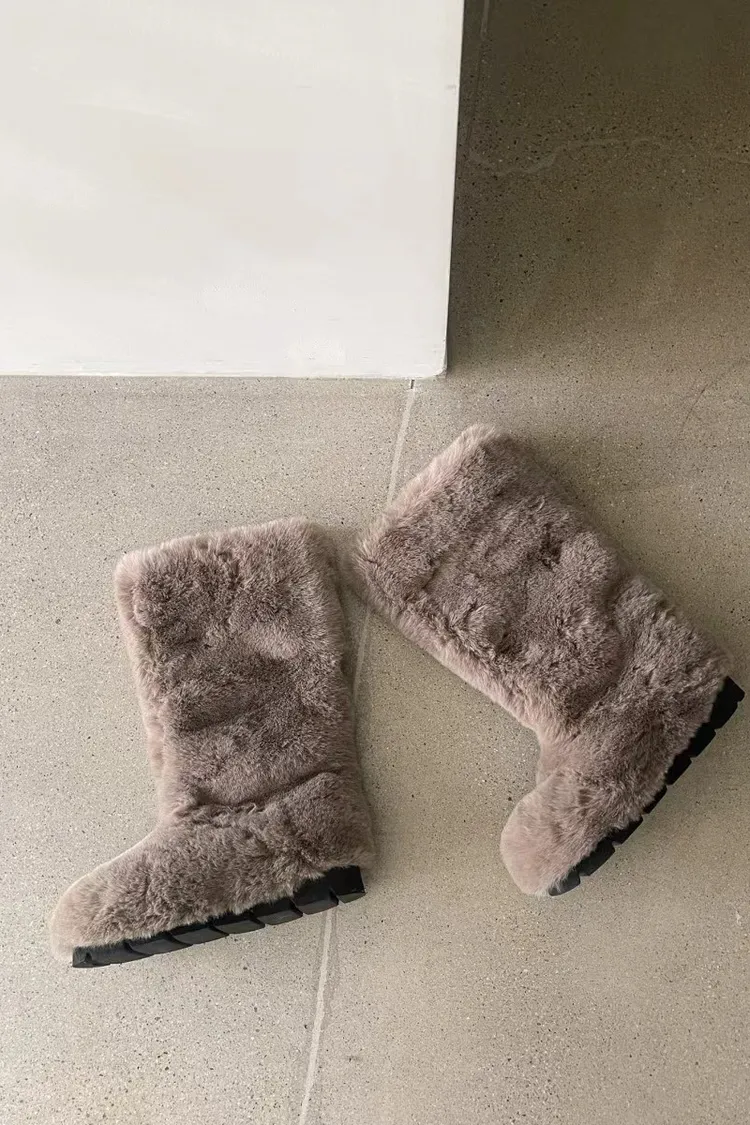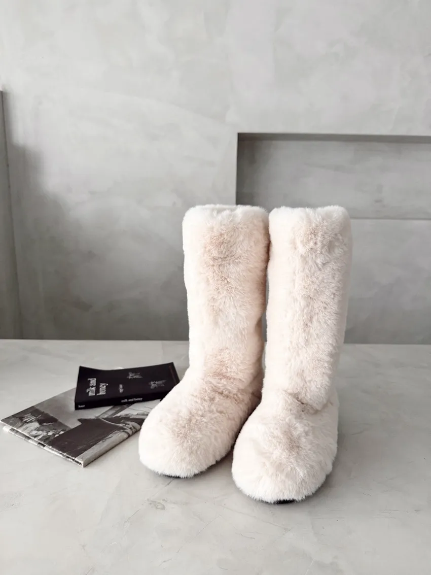 UQ37冬日溫暖毛毛長靴(黑,灰,白)