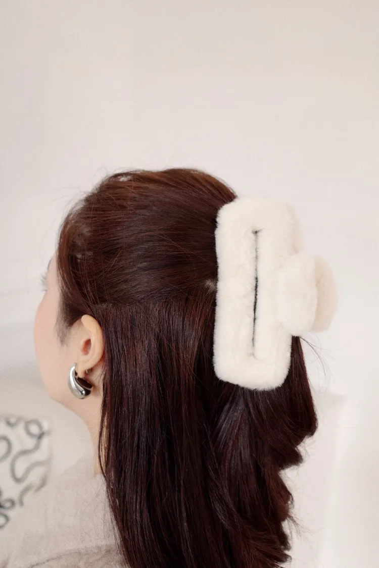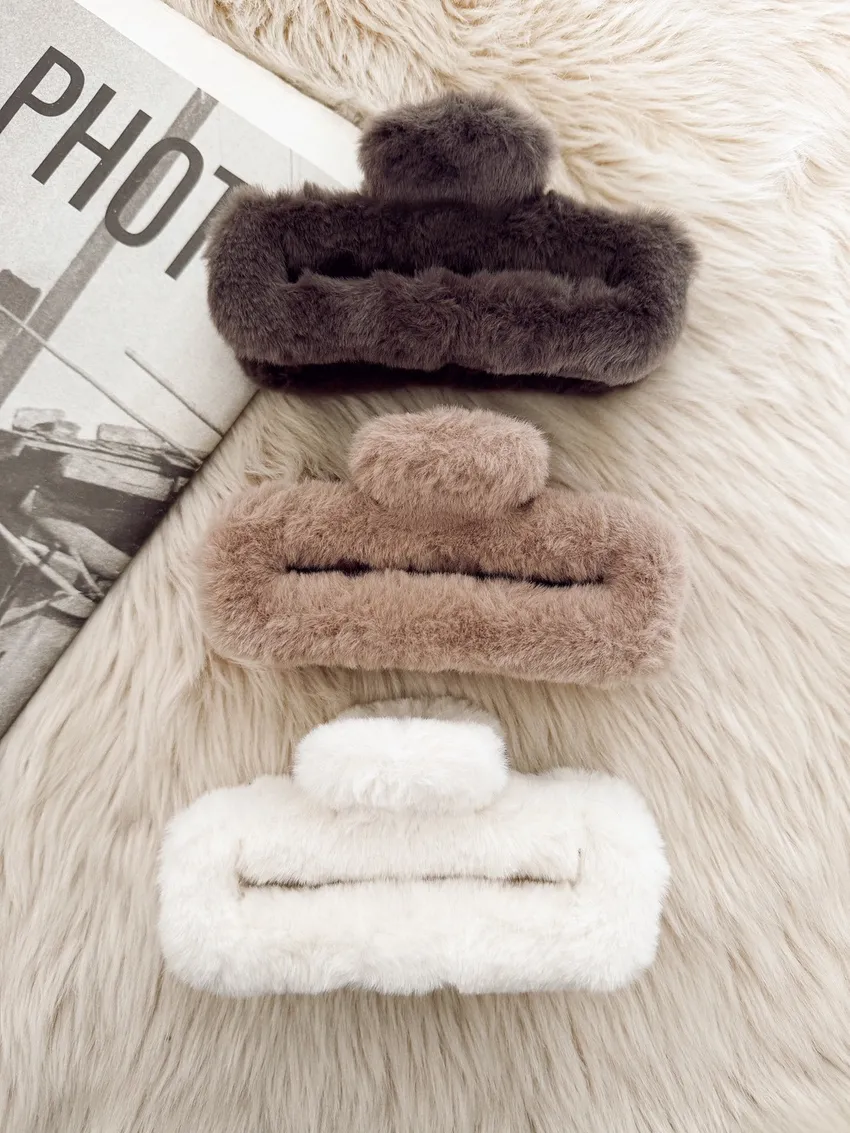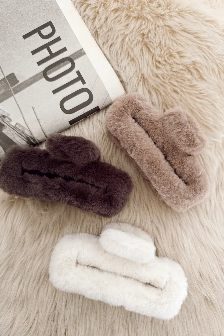 UQ53可愛毛毛鯊魚夾【單賣】(白,杏,深咖)