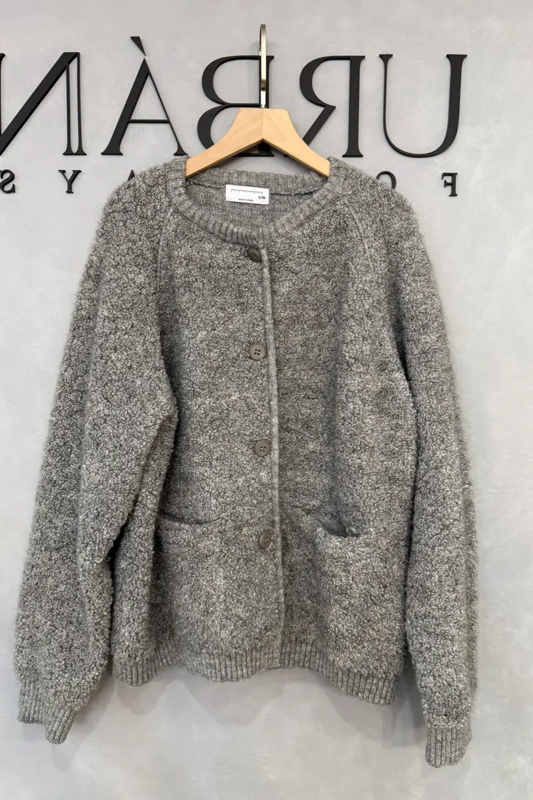 UQ56圓領QQ毛外套(灰/白)