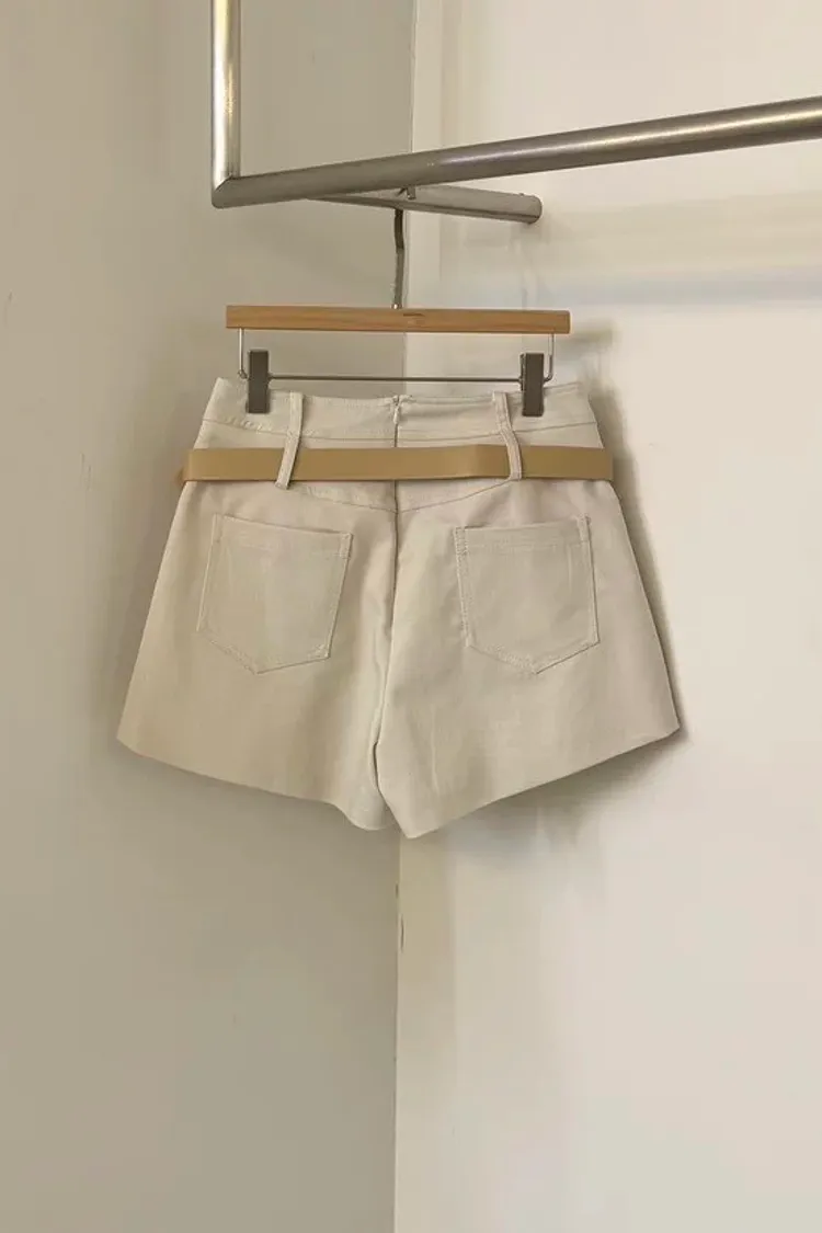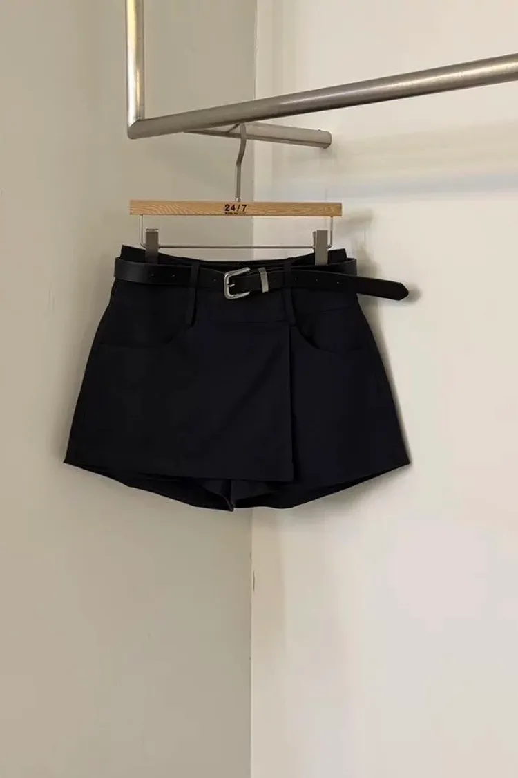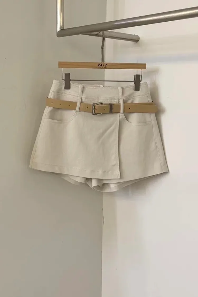 UR14前開衩造型褲裙【附皮帶】(白/深藍)