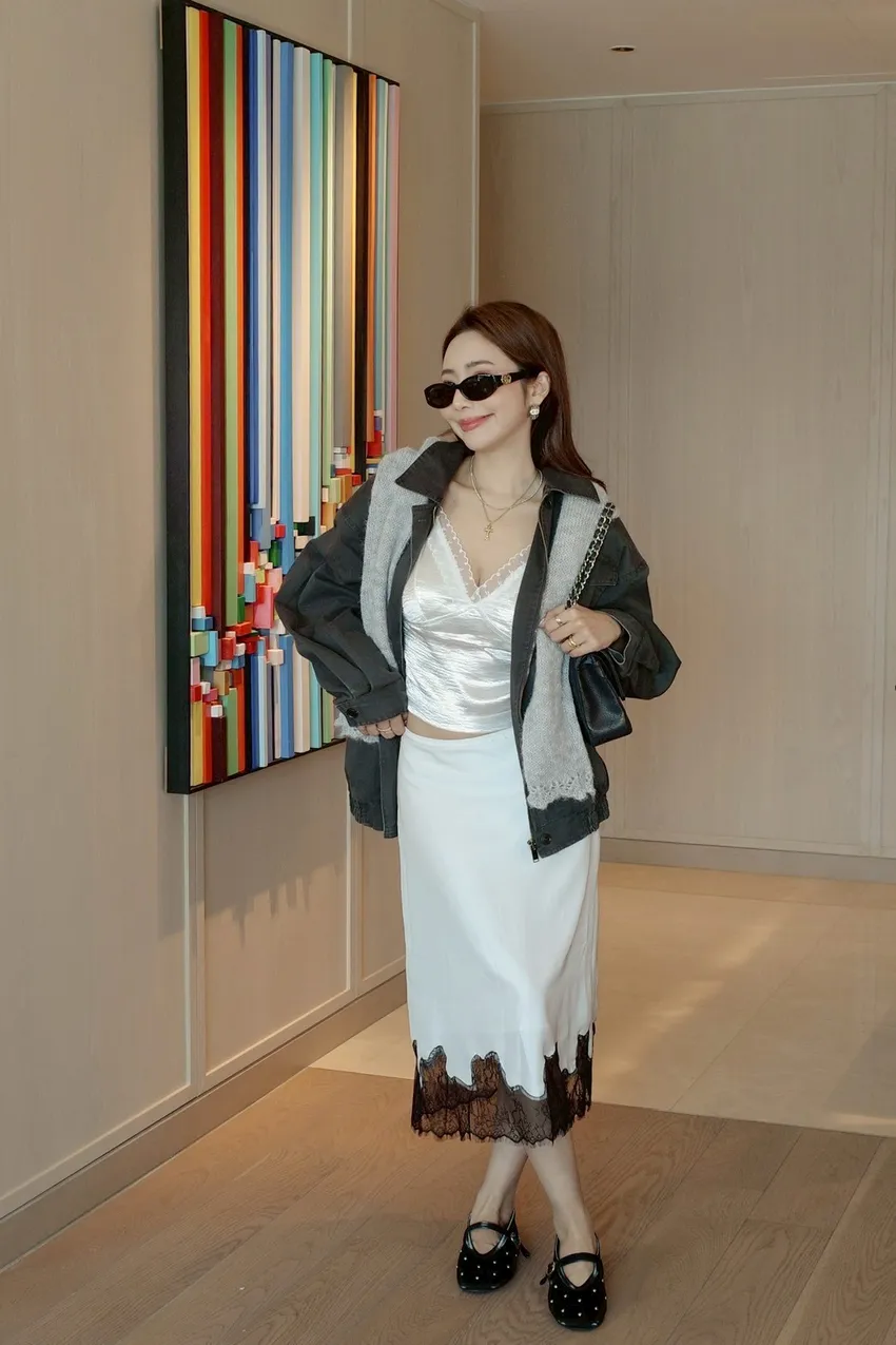 UR19拼接蕾絲雪紡裙(拚色,黑)