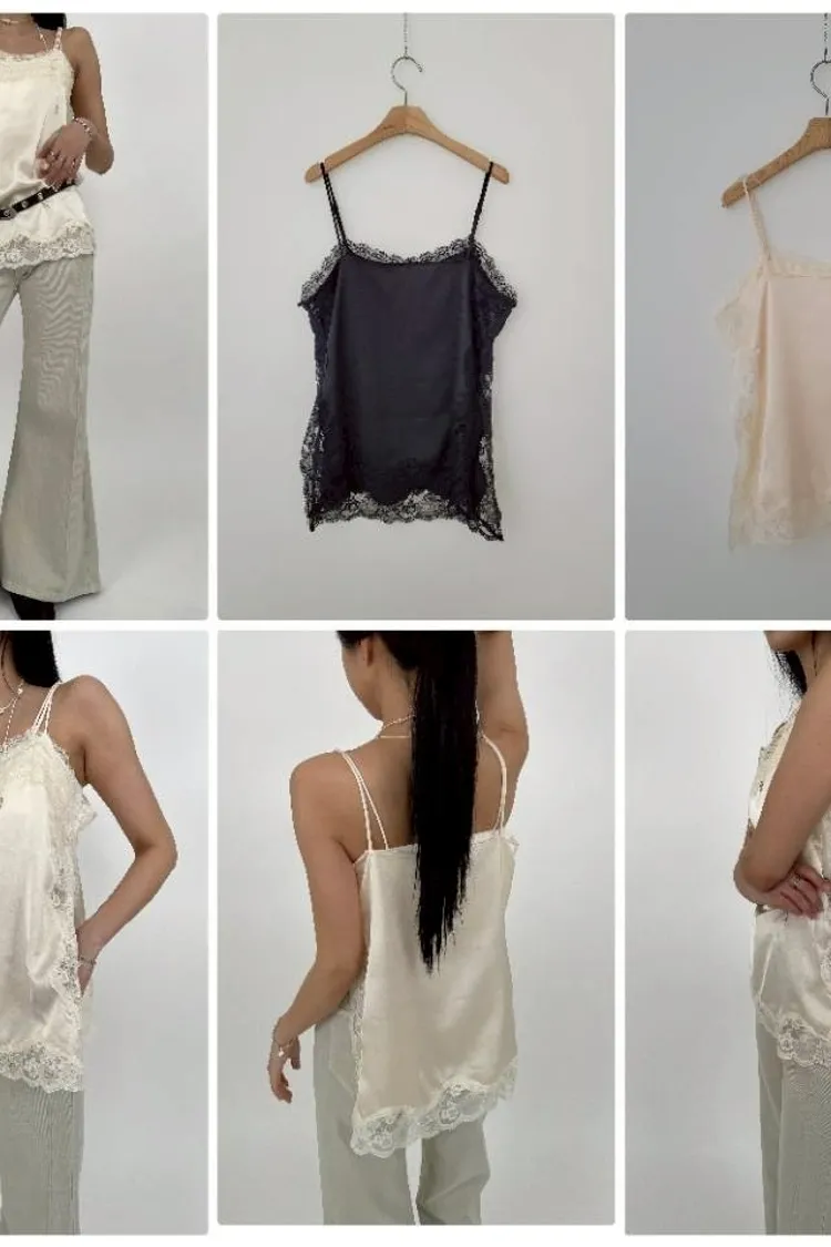 UR23側開衩蕾絲背心(黑/奶油)