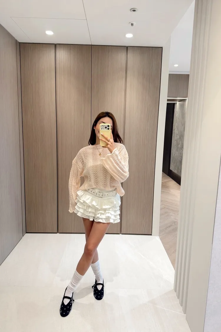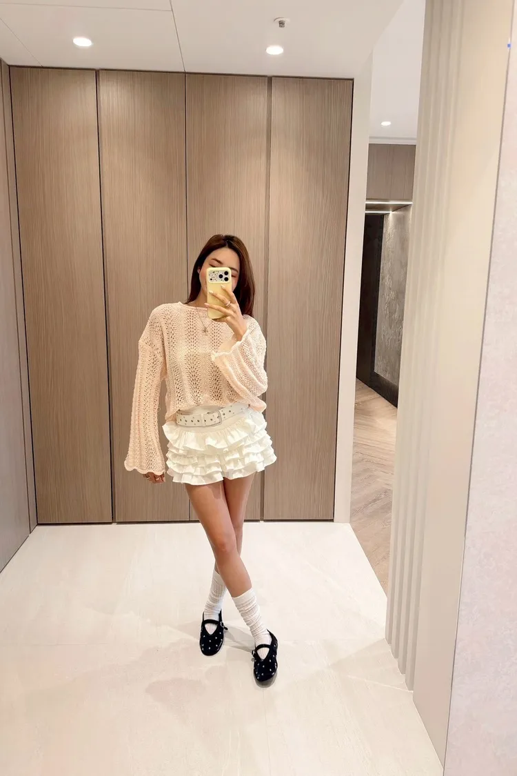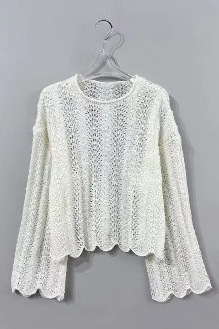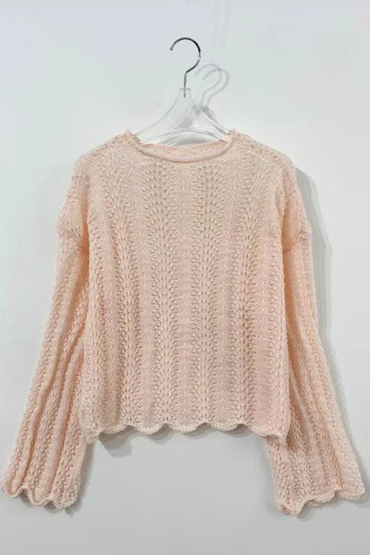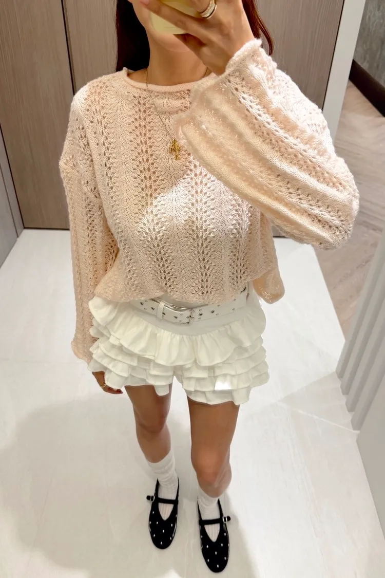 UR29簍空花邊針織上衣(白/粉)