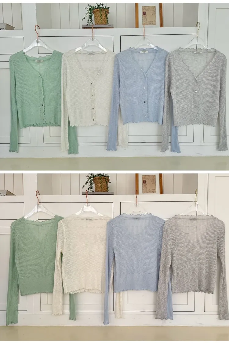 UR58捲邊貝殼釦小外套(白,灰,水藍,薄荷)